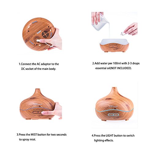 Not just a humidifier, add a few drops of your favorite essential oil (NOT INCLUDED) to enjoy wonderful aromas throughout your home. It also can be a beautiful night light for room, offering a soft glow and romantic ambience. Humidify the air, breathe easier, and relieve cough and sinus congestion due to colds, allergies, and flu. Reduce odors in your house from cigarettes, cooking, and pets.