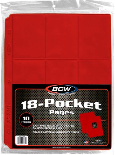 -. Binding : Kitchen -. Brand : BCW -. EAN : 0787732713513 -. Feature : These sleeves will help protect your trading cards from bending and help keep out dust! / Perfect for organizing your loose trading cards & keeping your collection safe! / Holds up to 18- 2 1/2 X 3 1/2 Cards / Features top loading pockets with strong welds / Fits all standard 3-ring binders and albums -. Label : BCW Supplies -. Manufacturer : BCW Supplies -. MPN : na -. PackageQuantity : 1 -. PartNumber : na -. ProductGroup : Home -. ProductTypeName : HOME -. Publisher : BCW Supplies -. Studio : BCW Supplies -. Title : (10) Trading Card 3-Ring Binder Pages - Holds 18 Cards - Red - BCW Brand -. UPC : 844568067187