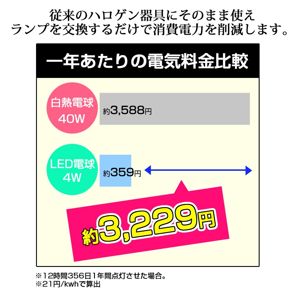 Energy saving: Equivalent to halogen lamp 40 W type, rated power 4 W only, 90% electricity cost can be omitted compared with general incandescent light bulbs.