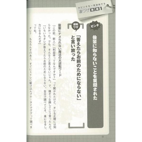 【商品説明】 定価(税込み):710円 値引き:5% OFF 本書では天然すぎて怒る前に笑ってしまうようなユーモアあふれる言い訳術から、逆境にあっても自分の有能さを相手に植え付けてしまう頭脳的な印象操作術まで、ビジネスシーンで起こりがちなピンチやトラブル、大失敗を乗り切る一発逆転テクニックを紹介します。 バーゲンブック 新品 特価 格安 ビジネス 経済 スキル テクニック |
