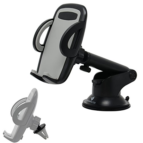 iProductsUS Phone Holder for Car, Universal Car Phone Mount, Hands Free Windshield Dashboard and Air Vent Car Cradle Mount for iPhone Samsung LG HTC All of the Smartphones and GPS Devices (BlackGray)