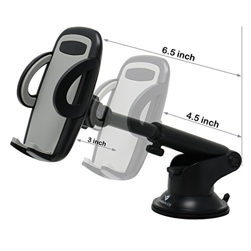 - ▶ Newest designs ensure safe driving – iProductsUS’s car phone mount is designed to adjustable arm length from 4.5 inch to 6.5 inch so you can set up it as the suitable position in your car without blocking your eyesight. It is also designed to rotate 360 degrees for holder and rotate 180 degrees for arm, which allows you to adjust your screen at perfect viewing angle without having to look down, both of them ensure you to drive safely.