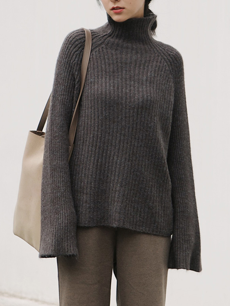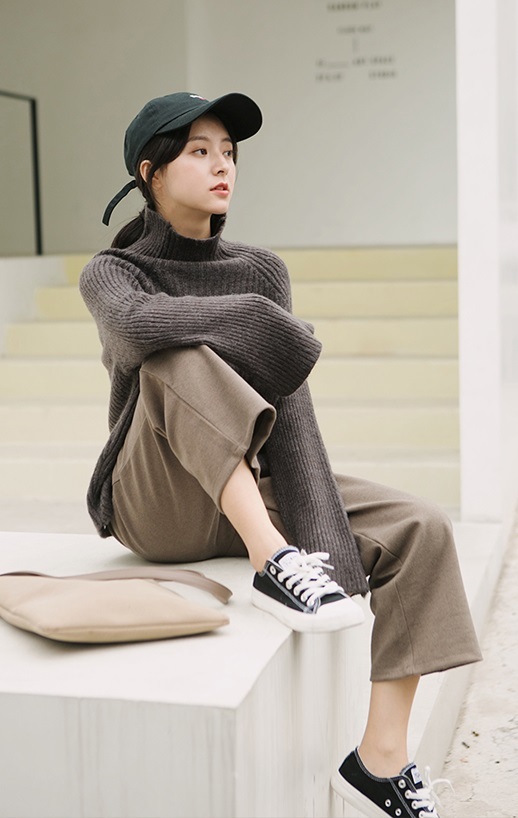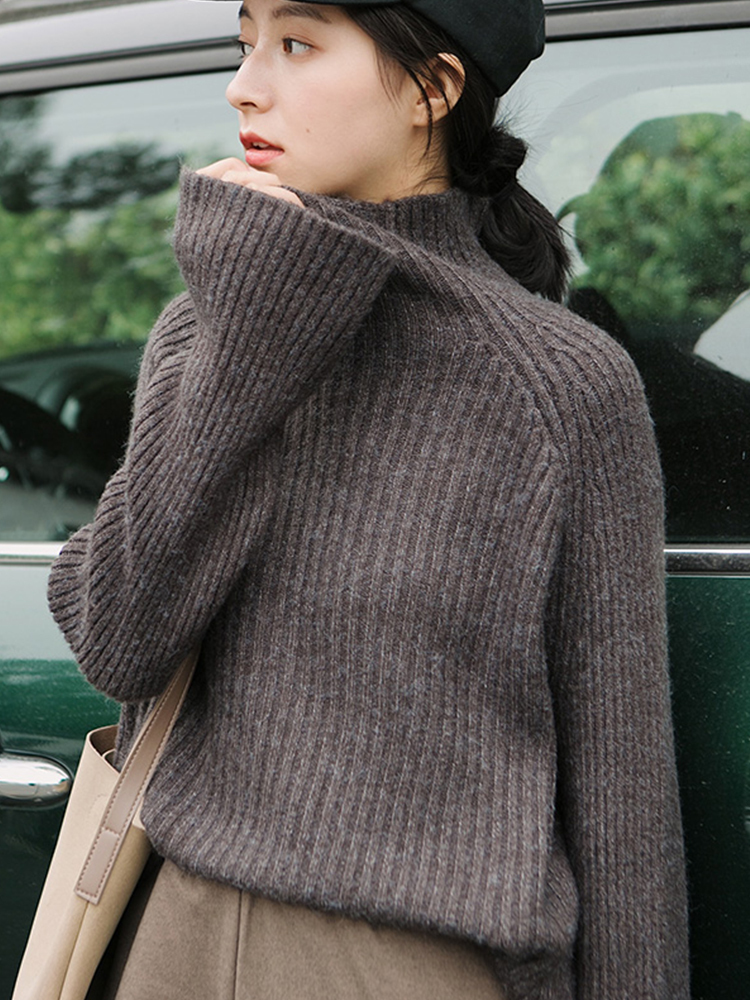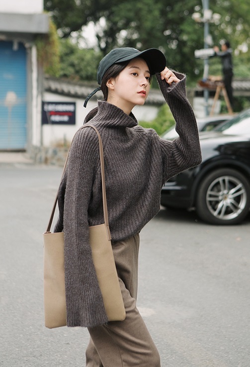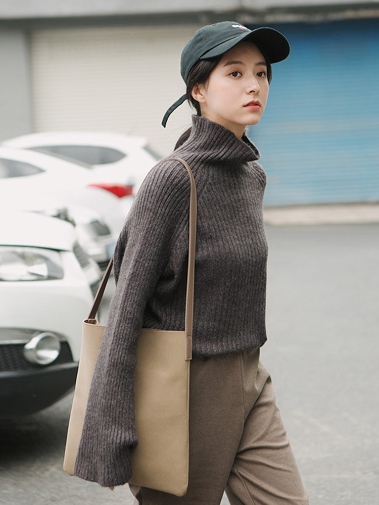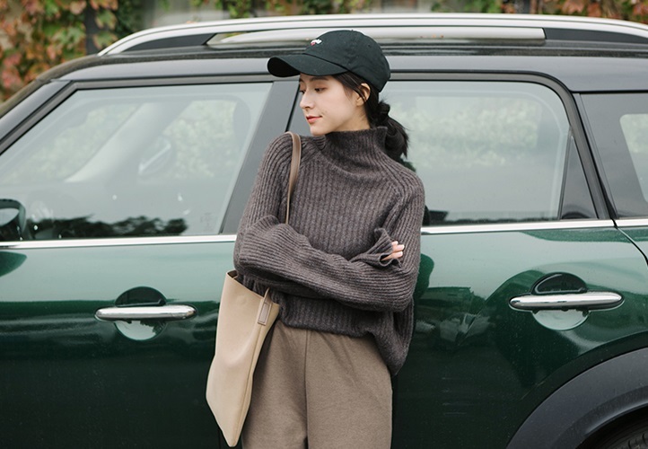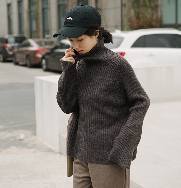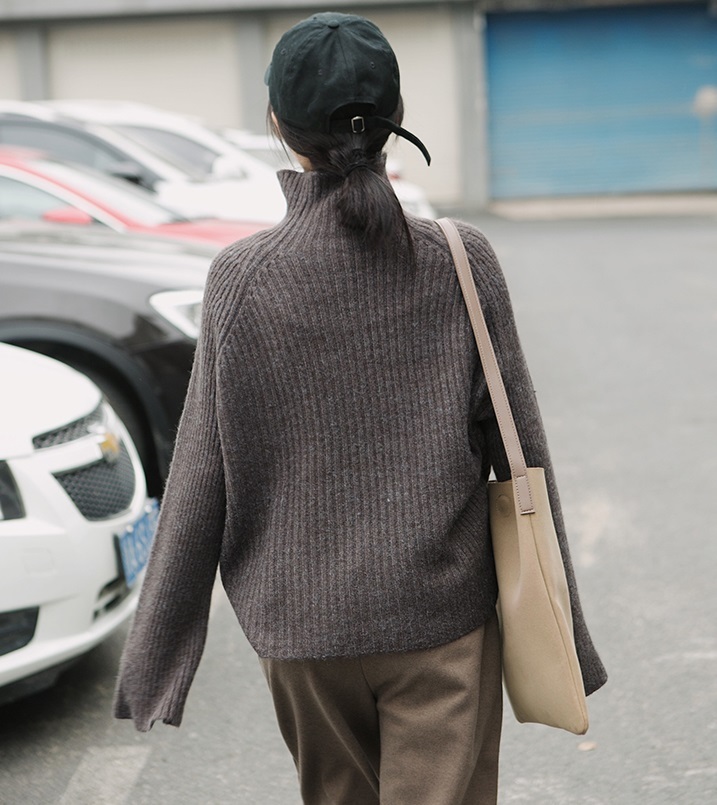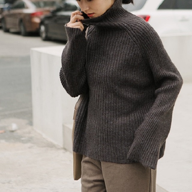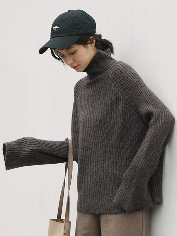 ボリュームがあるように見えてコンパクトにまとまるリブニット。
