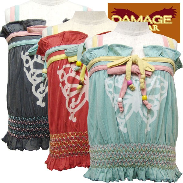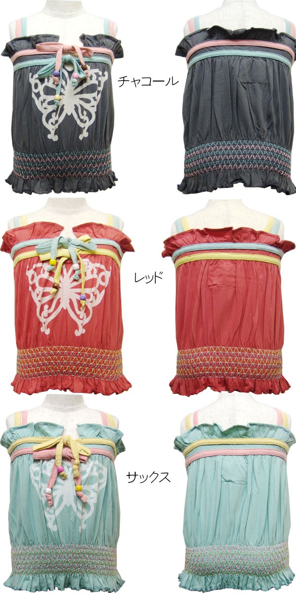 コメントバタフライモチーフプリントに2段リボンでとってもキュートなチューブトップチュニックです♪