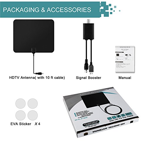 Material of antenna is designed by high temperature flame retardant and reusable. Specially designed to receive digital signals for free national and local television programs.It has high gain and low error rate digital TV signal reception, and a signal enhancement in actual use. Getting the same as free channels resources from local area as well as high quality with cyber online HD movies. Frequency: VHF(47-240Mhz) \UHF(470-862Mhz) LNA?Gain:30dB Range :50-100miles Connectors: F Male Impedance:75Ω How to Set UP? 1.Connect the end(F-male) of attached coaxial cable to the ANT/IN connector on the back of the TV or DVB-T tuner 2.Put the equipment place in an optimal position, and set the tuner mode to "Antenna" or "Air" 3. Search free channels using your TV's 'Channel Search' in your local area. NOTES 1 Please make sure your TV and the antenna connector is matching. 2 Receiving channels depend on your region and broadcast from the tower, also on the surrounding environment and barriers between you and the broadcast tower 3 Keep away from interference source, such as: microwave oven, air conditioning, refrigerator and more, it may weak signal reception 4 You should re-tune your TV and digital box from time to time to ensure you are receiving all available services. Re-tuning takes only a few minutes and can be done with your remote control. 5 You must re-scan whenever you move the antenna 0 |