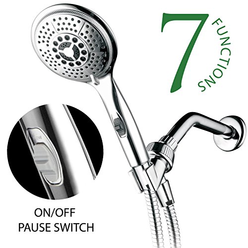 DreamSpa® Ultra-Luxury 7-Setting 5 Inch Handheld Shower-head with Patented ON/OFF Handle Switch by Top Brand Manufacturer (Premium Chrome)