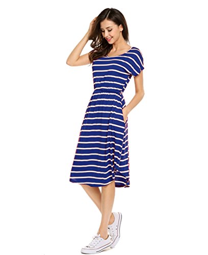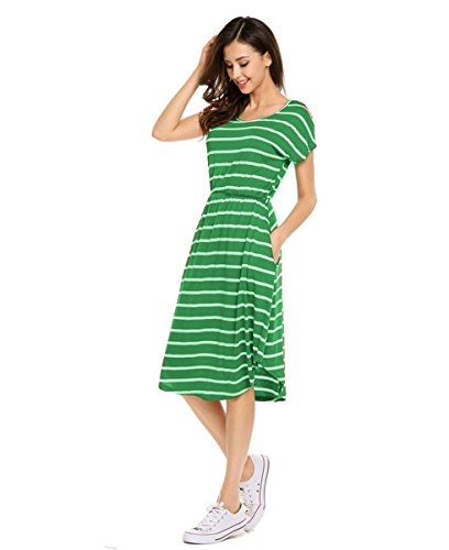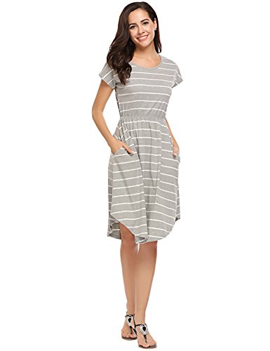 The lightweight,soft and stretchy material is perfect for breezy and bright days, while the flared skirt adds the perfect flirty and fun detail to this look! This dress also features short sleeves and a scoopneck for a look that's always in style! pockets on each side