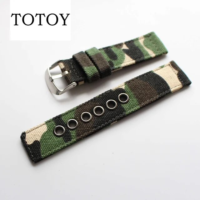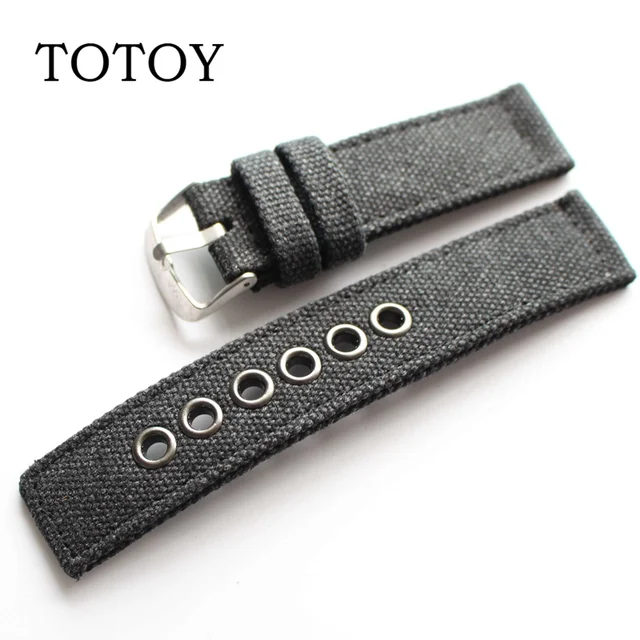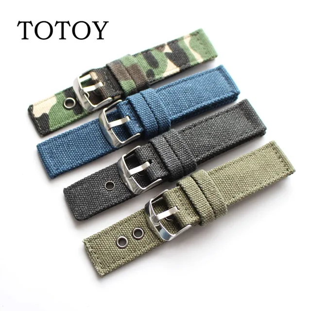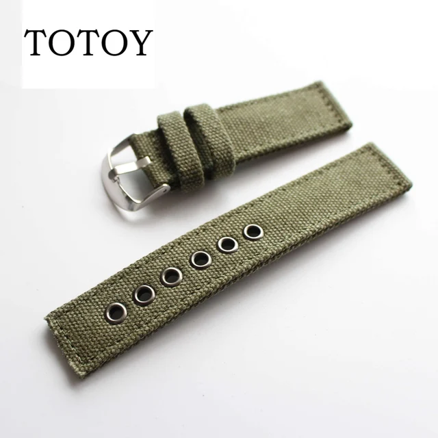 | [해외]TOTOY 블랙/그린 캔버스 시계 줄, 높은 품질 22 미리메터/20 미리메터 레트로 여름 시계 줄, 안티 땀 남성 스트랩 |