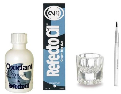 -. Feature : The Refectocil Color Kit includes: Blue Black Cream Hair Dye, Liquid Oxidant 3% (10 VOL)1.69oz, Mixing Brush and Glass Dappen Dish / All the items you need to start dying your hair