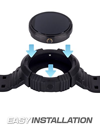 Moretek Rugged Protective Case with Strap Bands for Motorola Moto 360 1nd gen Smartwatch / Watch Sport Replacement Band (Black)