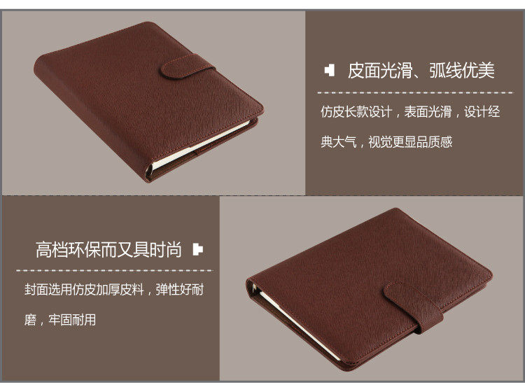 封面采用优质皮革精工制作,内芯采用70g优质道林双胶纸,书写流利,不易渗透