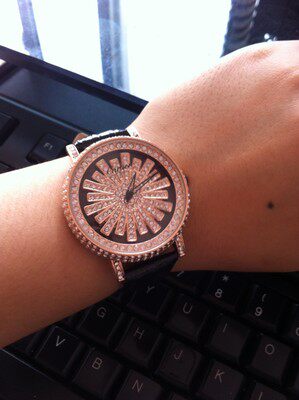 很厚实的表盘,表面镶满了水钻