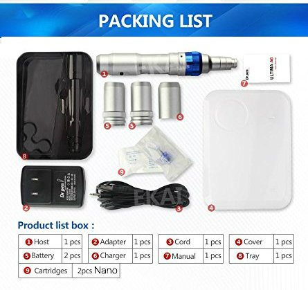 -. Binding : Misc. -. Brand : Dr. pen -. Color : Silver -. Feature : Visual and noticeable improvement in a few days from the first treatment Short healing time; No permanent damage or injury; No bruising, infection, discoloration or other complications; Extremely high absorption of any active ingredients Almost all skin types can be treated Thickens the dermis without damaging or removing epidermis -. IsAdultProduct : 0 -. Label : DrPen-A6Nano -. Manufacturer : DrPen-A6Nano -. Model : A6 -. MPN : Ultima A6 -. PackageQuantity : 1 -. PartNumber : Ultima A6 -. ProductGroup : Beauty -. ProductTypeName : BEAUTY -. Publisher : DrPen-A6Nano -. Studio : DrPen-A6Nano -. Title : Dr. pen Ultima A6 Rechargeable Nano Chip Therapy System