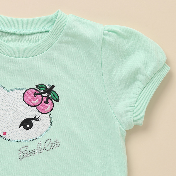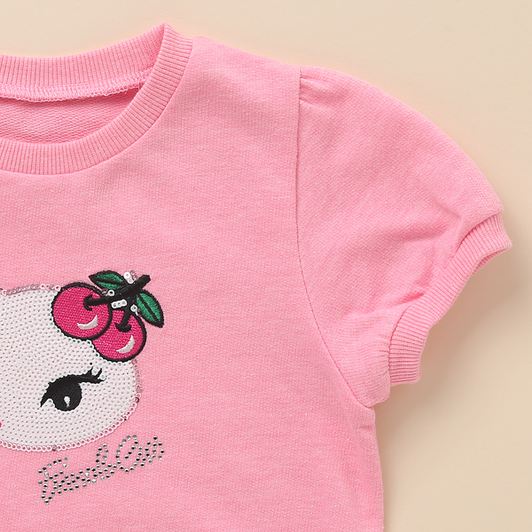 상품설명 상판의 윙크하는 WH 스팽글 고양이에 앵두로 포인트를 주어, 귀엽고 편안하게 입을 수 있는 반팔 맨투맨 입니다. 넥크라인과 밑단에 매칭 립을 데어주어 캐주얼한 분위기를 살렸습니다. 초미니 쮸리 원단을 사용해 활동성있게 입을수 있습니다. 상하의 세트로, SK, PT 어디에나 러블리한 캐쥬얼 분위기를 업시켜줄 사랑스러운 아이템입니다.