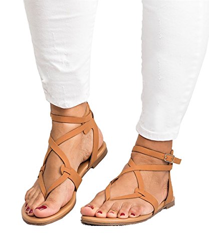 Pxmoda Womens Flip Flop Gladiator Sandals Criss Cross Strap Sandal Shoes
