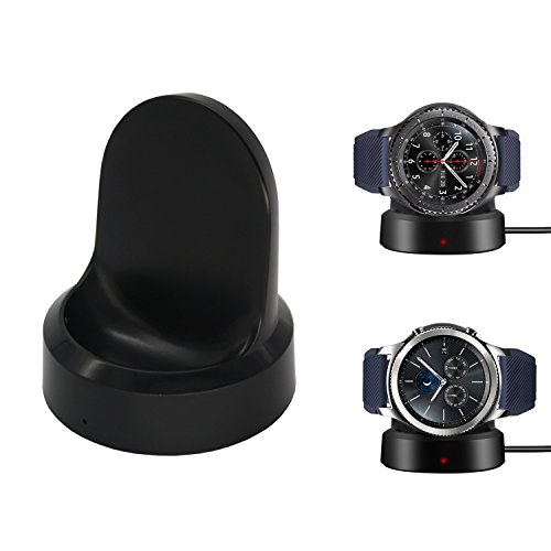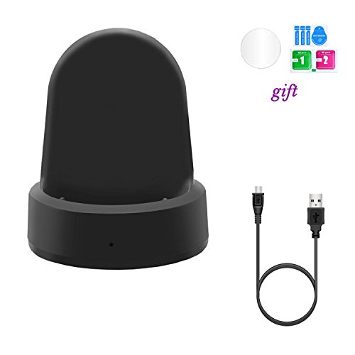 FastSnail Samsung Gear S3 Wireless Charger, Qi Wireless Charging Cradle Dock for Samsung Gear S3/S2 Smartwatch with 1 Tempered Glass Screen Protector(Black)