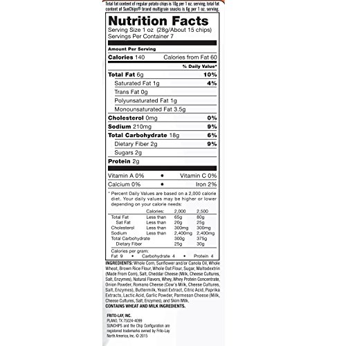 -. Feature : 7.0 oz. bag of SUNCHIPS HARVEST CHEDDAR Flavored WholegrainMultigrain Snacks / Delicious, whole grain snacks flavored with real cheddar cheese / Great snack bag for the pantry / Contains 21g of Whole Grain per 1 oz. serving. Eat 48g or more of whole grains daily