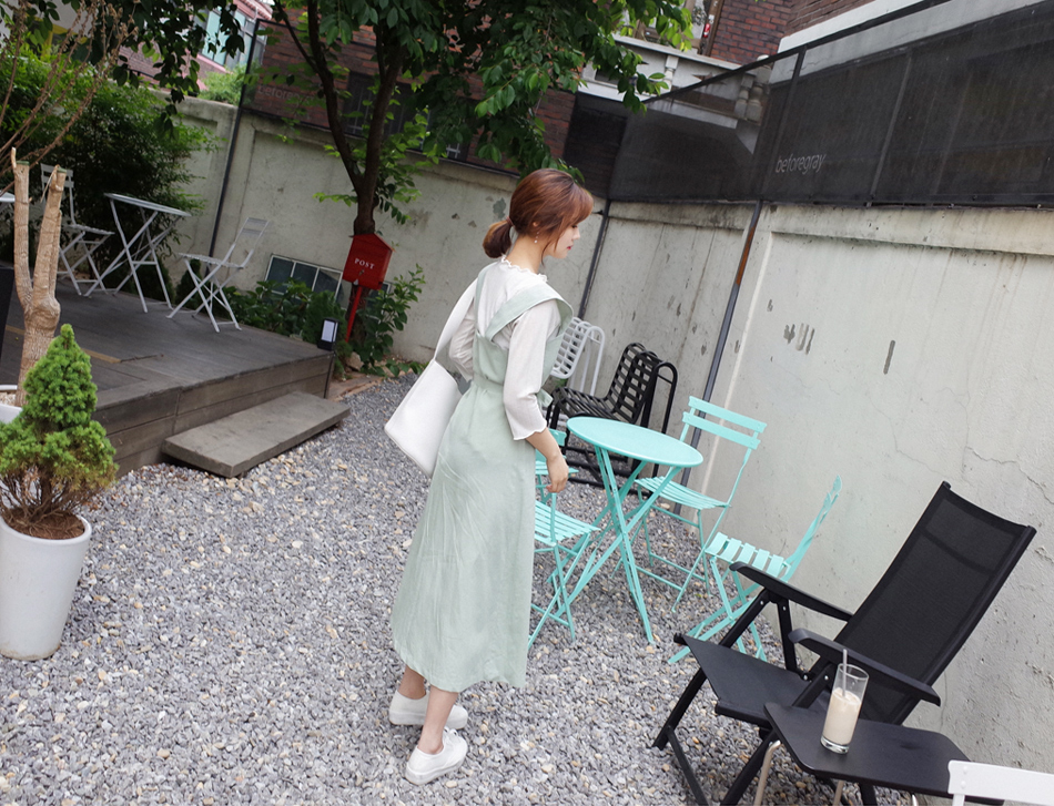 시원한 소재라 레이어드하기 적당한 아이랍니다.