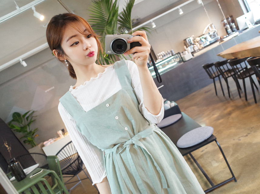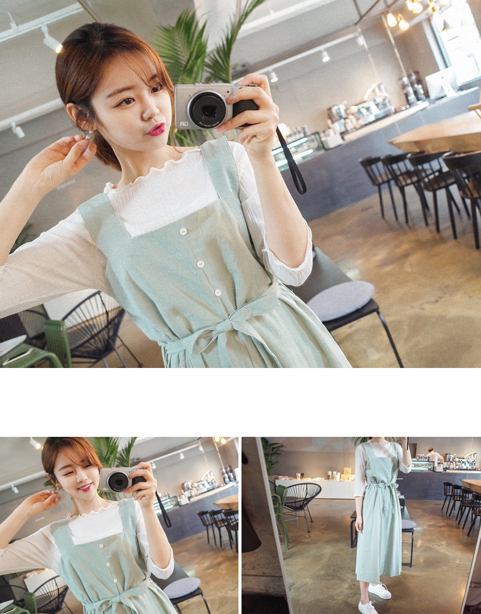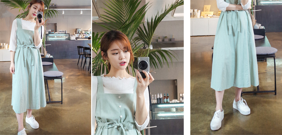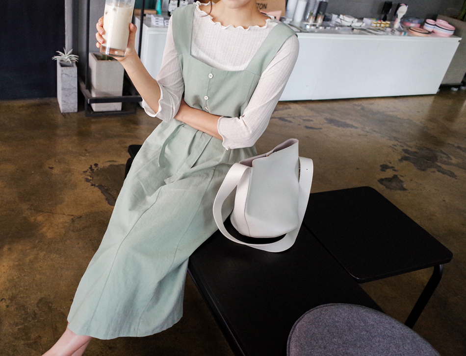 넥라인과 소매, 밑단이 모두 물결디테일이 있는