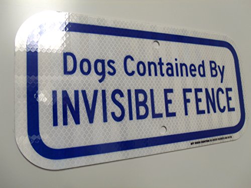 Dogs Contained By Invisible Fence Laminated Sign - Electric Fence Safety Dog Signs - 12" X 6" - .080 3M Engineer Grade Reflective Aluminum - Made in USA - UV Protected and Weatherproof - A88-361RA