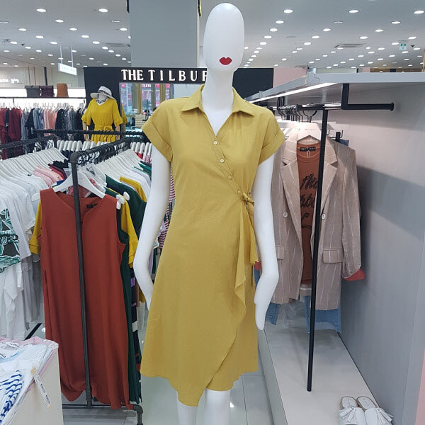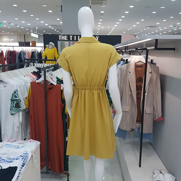 사선단추 여밈으로 탈착이 용이하며 캡소매 셔츠형 원피스로 깔끔하면서 여성스런 연출이 가능합니다.