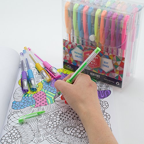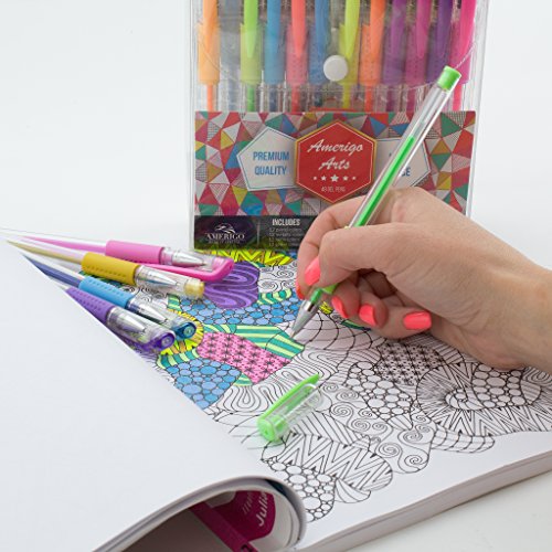 -. Title : Premium Gel Pens for Adult Coloring Books by Amerigo - Set of 48 Assorted Colors Includes Glitter, Metallic, Pastel, Neon Gel Pens (Black included) - Express Yourself + GRIP for Your COMFORT!