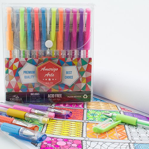 -. Feature : ★ BEST QUALITY AND COMFORTABLE GRIP ~ The Gel Pens by Amerigo are crafted with precision for smooth functioning and comfortable grip. ~ The tips are 0.8-1.0mm that makes the pen writing smoothly and using durable without creating any distractions due to skips. ~ These pens will last you until the very last drop of ink! / ★ FULL SPECTRUM OF COLORS, NO DUPLICATES ~ Our set of 48 gel pens has a full spectrum of distinctive colors - to let you get creative in style. ~ You will be able to find a color match for almost all color schemes - from metallic, glitter, neon and pastel (Black color included). ~ These pretty and vibrant assortment of colors will breath life into any craft project. ~ The pens write well on both light and dark papers - thus allowing you to choose a right background and color combination. / ★ MAKES WONDERFUL GIFT ~ The set of Gel Pens will make a thoughtful gift for anyone - be it your friends, family or any children - all are going to find it extremely useful and these pens will surely add a lot of colors and fun to their lives as well. ~ So surP.R.Ise your kids before the school starts or buy them as a Christmas / Birthday gift. / ★ DIFFERENT USAGES: whether you are relaxing with an adult coloring books, scrapbooking, journaling, writing diary, notebook, memos, or doing any other crafts, these Pens let you express your ideas more effectively and creatively. You can do endless number of things with these amazing Gel pens - from sketching, doodling, writing to embellishing craft. / ★ SATISFACTION GUARANTEED ~ We are a small family business and we DO believe in quality of our products. ~ Act Now and Order - Click the "Add to Cart" button and buy with no regrets as we offer 90-DAY MONEY BACK GUARANTEE with No Questions asked!