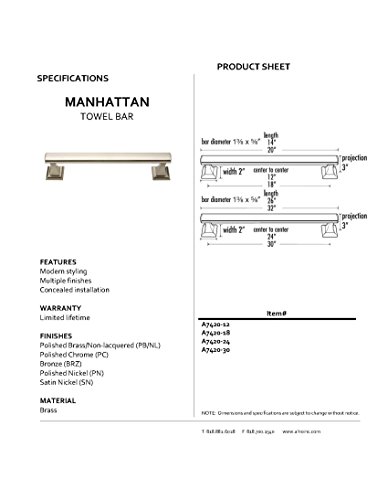 Alno A7420-30-PC Manhattan Modern Towel Bars, Polished Chrome