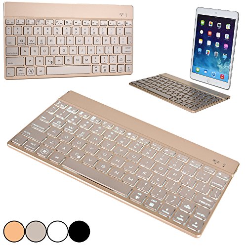 Cooper Cases(TM) Aurora Apple iPad 1/2/3/4, Air/2, Mini/2/3/4, Pro Wireless Bluetooth Keyboard in Gold (Android/Windows/iOS Compatible; US English Keyboard; Backlighting Feature in 7 Colors)