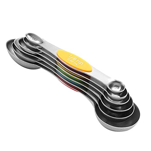 AUYE Magnetic Measuring Spoons - Set of 6 Metal Measurement Spoon for Dry and Liquid Ingredients - Multifunctional Teaspoon and Tablespoon BPA Free Double End Nesting for Home Kitchen