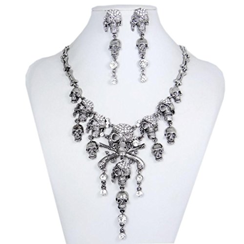 -. Binding : Jewelry -. Brand : EVER FAITH -. Department : womens -. Feature : [!]EVER FAITH® is a US registered trademark and Ever Faith Jewelry is its only owner. / Equally gorgeous with a dinner dress, or spectacular in casual wear. / Chain length: 41cm (16.14")-46cm (18.11"). Attachment Size:12.5cm (4.92") by 11.3cm (4.45"). Earring size:7.5cm (2.99") by 1.9cm (0.75"). / Intended Use: Wedding/Anniversary/Mothers-day/Valentines-day/Birthday/Party/Prom/Casual Wear. / Wrapping: Come with some spare crystals, a gift box and a favor bag. If you need assistance please contact us. -. Label : EVER FAITH -. Manufacturer : EVER FAITH -. ProductGroup : Jewelry -. ProductTypeName : FASHIONOTHER -. Publisher : EVER FAITH -. Studio : EVER FAITH -. Title : EVER FAITH Austrian Crystal Vintage Style Skull Pirate Necklace Earrings Set