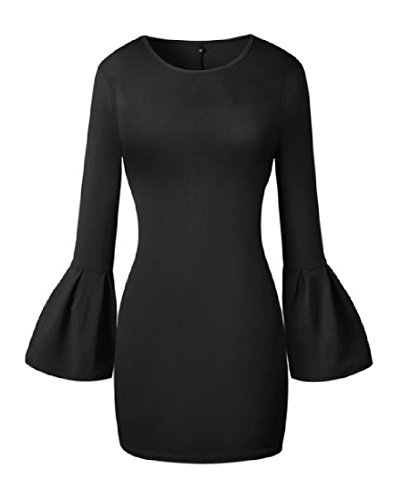 -. Title : Nicellyer 婦人用セクシーミニボディコンソリッドクルーネックフレア袖ワンピース