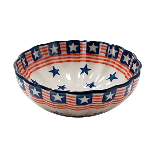 -. Title : Polish Pottery 4.5'' Fluted Dessert Dish Handmade Boleslawiec Stoneware Stars and Stripes