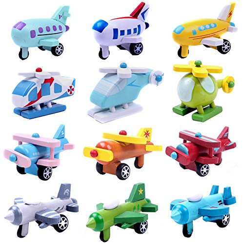 -. Title : ACTLATI 12 Pcs/Set Toddler Mini Plane Toys Cartoon Wooden Helicopter Model Cute Airliner Toy
