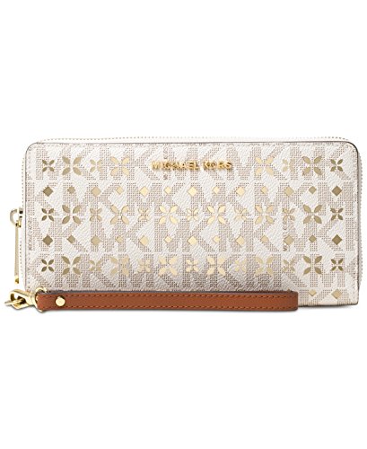 -. Title : Michael Jet Set Travel Large Travel Continental Wallet Flora perforated Vanilla