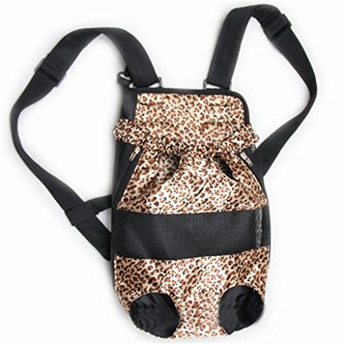 -. Title : Tom Clovers Leopard Dog Carrier with Lags Out on the Front Travel Shoulder Bag Small Dog Backpack