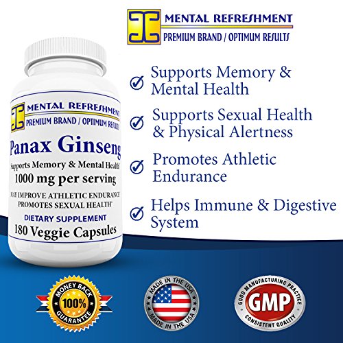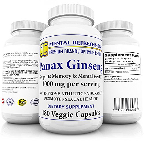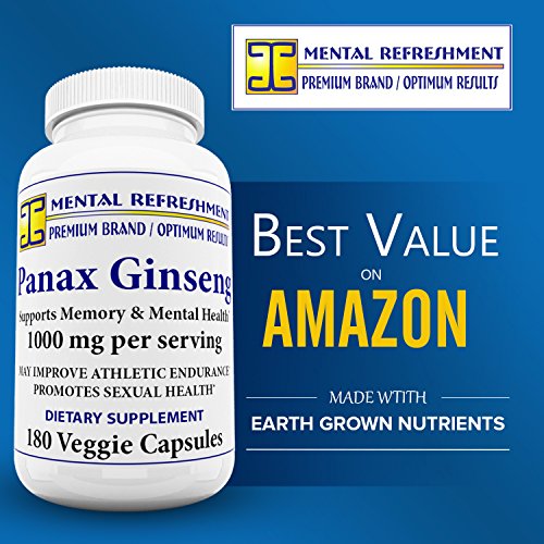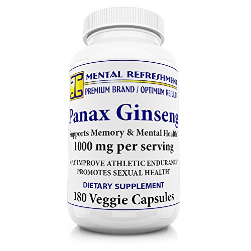 Mental Refreshment: Pure Red Korean Panax Ginseng (1000mg 180 Capsules) Extra Strength Root Extract Powder Supplement High Potency...