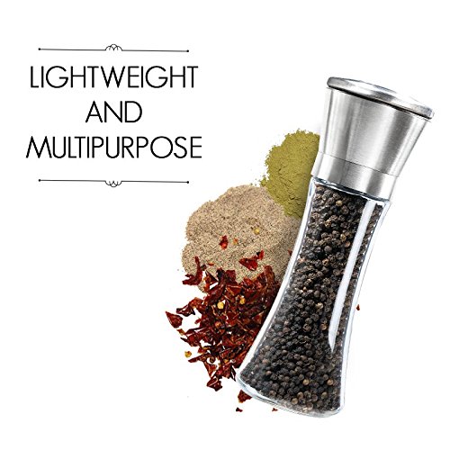 - ---Heavy Duty Stainless Steel and Pb-free Glass --- It is made of antirust stainless steel and high strength Pb-glass. The ceramic grinder is also non-corrosive and won’t absorb flavors/odors from your spices.