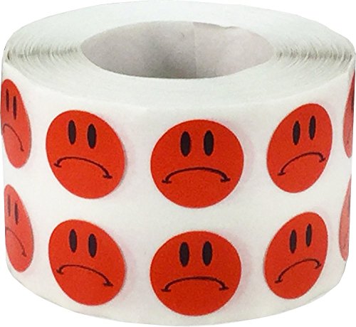 InStockLabels Frowny Face Stickers 1/2 Inch 1,000 Adhesive Stickers, Red