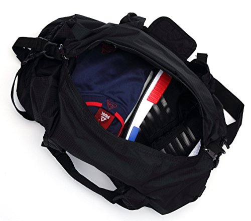 -. Feature : Diese Sporttasche aus dem robusten Ripstop Nylon ist super leichtgewichtig. Wasserdicht und reißfest. Der abnehmbare und einstellbare Schultergurt sowie softe Handgriff ist bequem zum Tragen und Umhängen. / Kompakt. Diese Sporttasche ist faltbar. Beim Falten kann man diese Sporttasche überall mitbringen. Beim Entfalten kann man viele Dinge für Reise oder Sport tragen. (Größe beim Entfalten: 49X27X27cm; Größe beim Falten: 23x20X5cm) / Leichtgewicht (0,77 Pfund) und geräumig (40L). Echt sehr platzsparend. Man kann diese Sporttasche in eigenen Rucksack oder Koffer speichern. / Perfekt geeignet fürs Fitnessstudio. Die Tasche ist leicht und sehr klein zusammenfaltbar, wodurch man sie super in die Spinde der Studios stopfen kann. / Zwei elastischen Taschen auf der beiden Seiten können Ihre Wasserflasche oder kleine Gegenstände halten, die Sie häufig benötigen. Auf der Vorderseite gibt es einen robusten und einstellbaren Gurtband Riemen für Ihre Yoga-Matte oder Ihr Handtuch. Ideal für Gymnastik, Fitness, Yoga, im Freien, Reise, Übernachtung usw. Sie können Ihre Dinge gut verstauen.