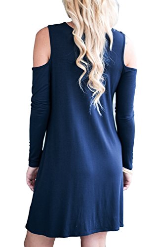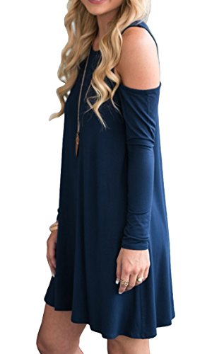 QIXING Women's Long Sleeve Cold Shoulder Casual Loose T-shirt Dress