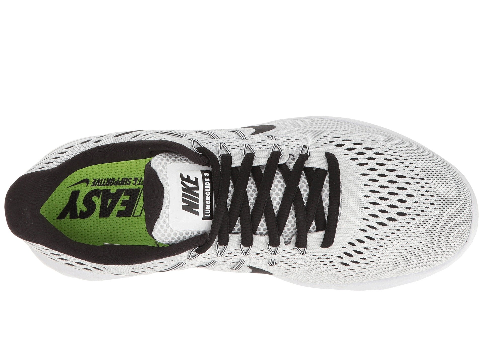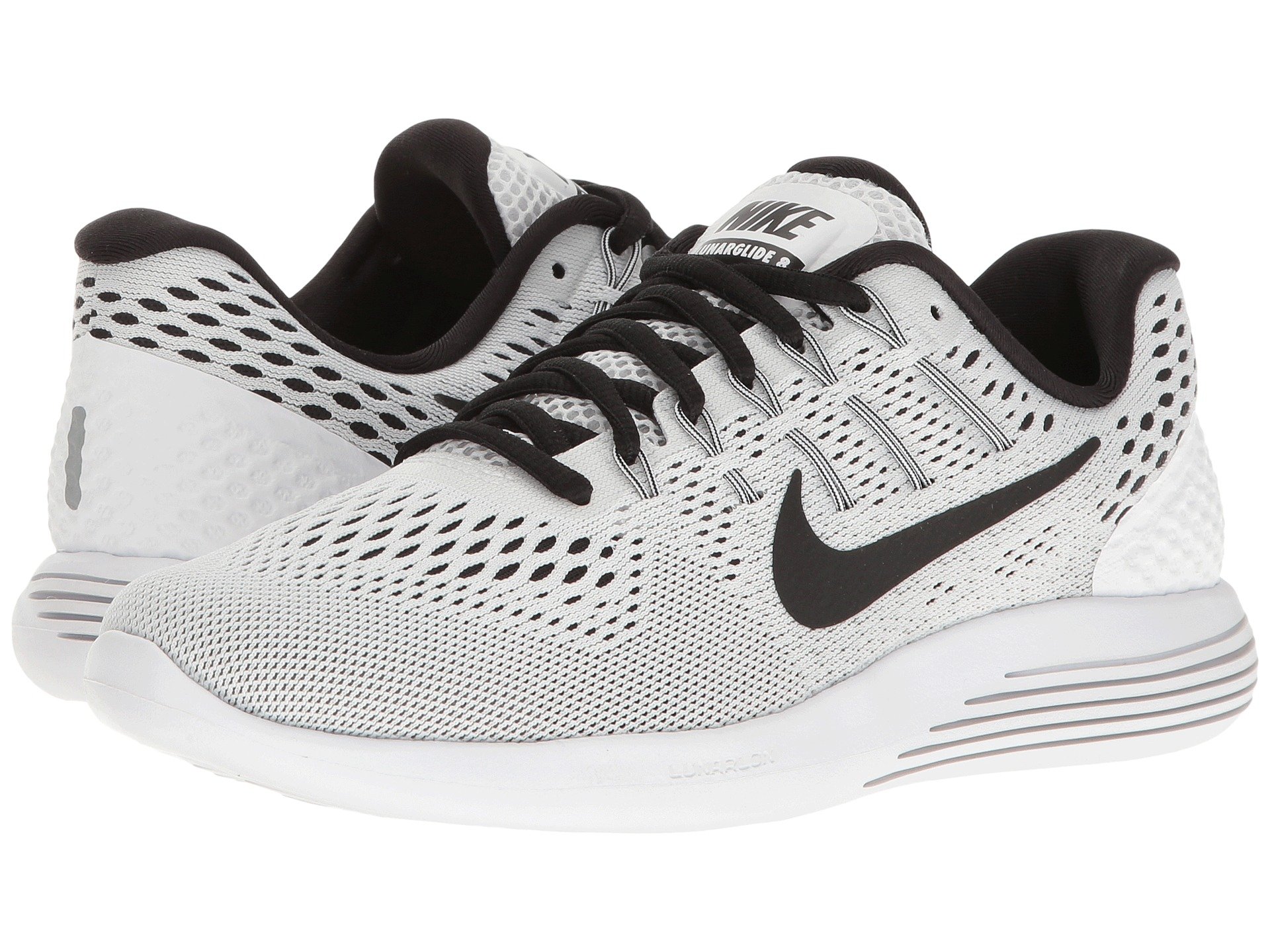 | Product Information SKU: #8714131Sail over the asphalt effortlessly in the Nike? Lunarglide 8 running shoe.Predecessor: Lunarglide 7.Support Type: Overpronation/Stability. Cushioning: High energizing cushioning. Surface: Road. Differential: 10 mm.Lightweight, single-layer deconstructed mesh and thin synthetic uppers provide breathability and style. Lace-up closure. Dynamic mid-foot support built into the laces. Lightly padded tongue and collar. Breathable fabric lining offers a great in-shoe feel. Removable molded foam insole. Soft IU midsole utilizes auxetic technology that allows the foam to expand and contract, allowing the foot to splay. IU 002 carrier combines strategically-placed laser sipes to promote a smooth, durable ride and reliable traction.Imported. Product measurements were taken using size 8, width B - Medium. Please note that measurements may vary by size.Weight of footwear is based on a single item, not a pair.Measurements: Weight: 11 oz |