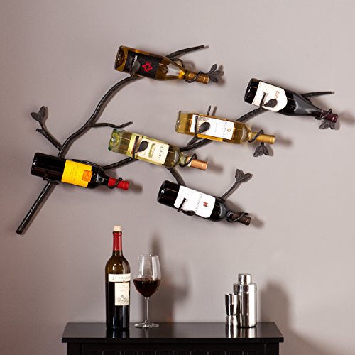 Southern Enterprises Brisbane 6 Wine Bottle Wall Mount Rack, Antique Wrought Iron Finish