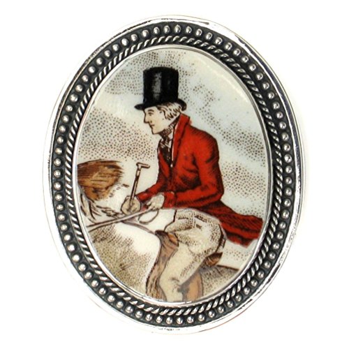 -. Title : Broken China Jewelry Copeland Spode The Hunt Horse and Rider Coat Tails Sterling Pin Brooch
