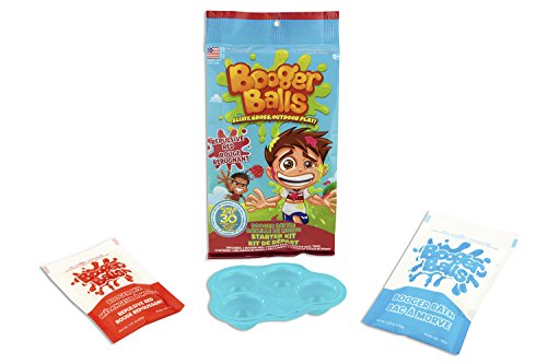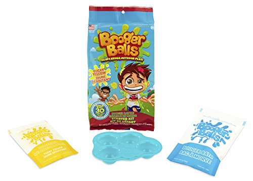 Gather your friends and get ready to pick a booger battle with Booger Balls! Mix 'em, pick 'em, and flick 'em for an epic battle of slimy, gross, outdoor play! Follow the easy instructions to create booger balls that go splat when you throw them! Arm yourself with the Starter Kit and make slime-filled Booger Balls in disgusting colors that will gross out your friends! All components of Booger Balls solution are completely non-toxic, biodegradable, and will not stain clothing, upholstery, or paint. It is suggested that the solution is rinsed with water after play and not left on walls or clothing overnight to avoid residue. Intended for outdoor use only. Appropriate for ages 5 years and up. 3 Pack includes 1 Red Starter Kit, 1 Green Starter Kit, and 1 Yellow Starter Kit.Feature