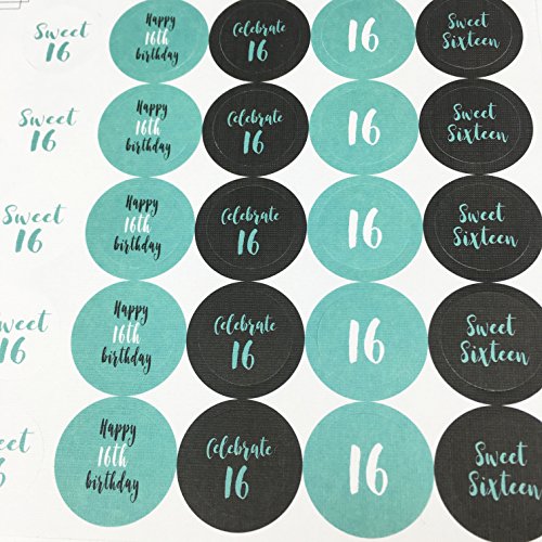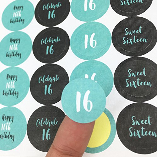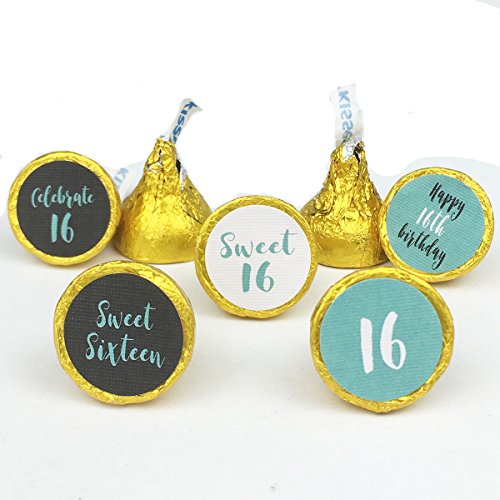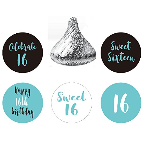 Sweet 16 – Blue 16th Birthday Party Favors Stickers, Round Candy Labels Fit Hershey’s Kisses, 200 Count