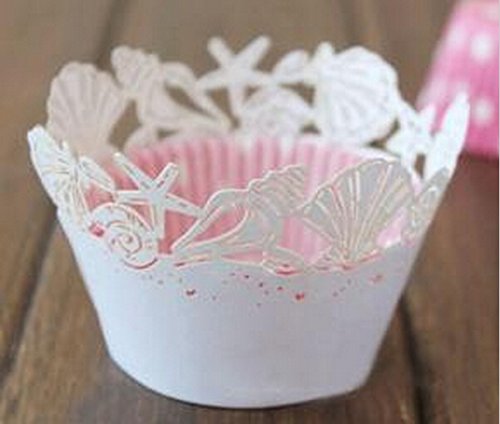 Saitec ® Beautiful 48Pcs White Seashell Laser Cut Lace Wedding cupcake wrapper muffin cup cake liner baking wrap for birthday