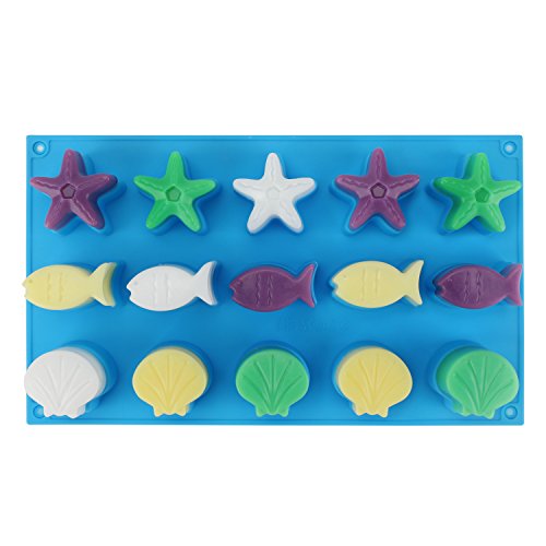 - Silicone molds shape: starfish, seashell, fish. Perfect to make candy, chocolate, ice cube, jello, little soap, candle, pudding, hard candy, fondant, frozen yogurt treats, cake decoration, party favors for birthday, baby showers, ice cream decorations.