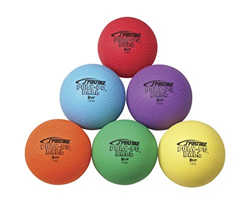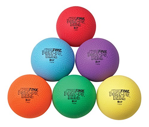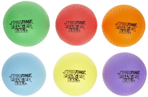 Sportime set of six balls is used for gym, playground, or classroom activities. The balls have roto-molded seamless construction to prevent leaks, and elastic-shape memory to avoid blow out in case of moderate over inflation. The balls are made of durable rubber, and measure 8-1/2” in diameter. Rubber is highly elastic, and resists abrasion and impact forces. The balls are in assorted colors for visual identification and distribution control, and latex free for individuals with latex allergies.