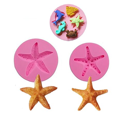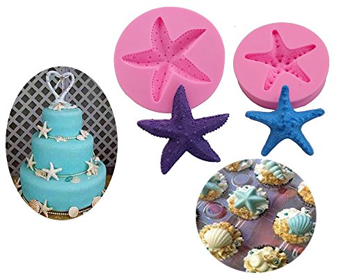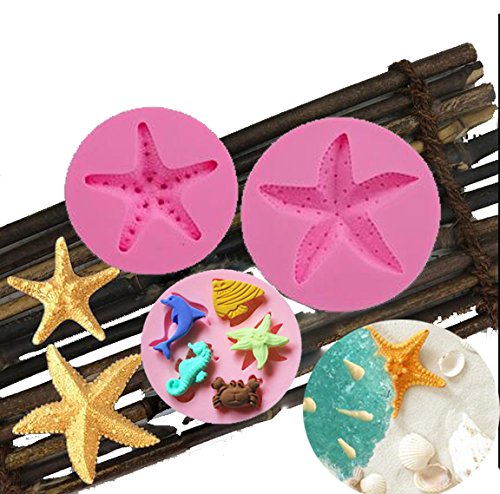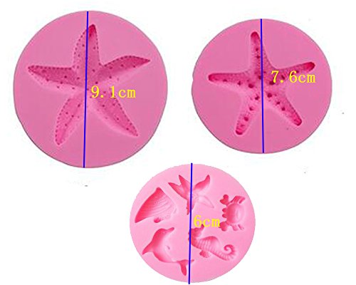 (Set of 3)Starfish Cake Fondant Silicone Mold,Chocolate Mold for Sugarcraft,Cake Decoration,Candy Mold,Cupcake Topper,Polymer Clay Mold
